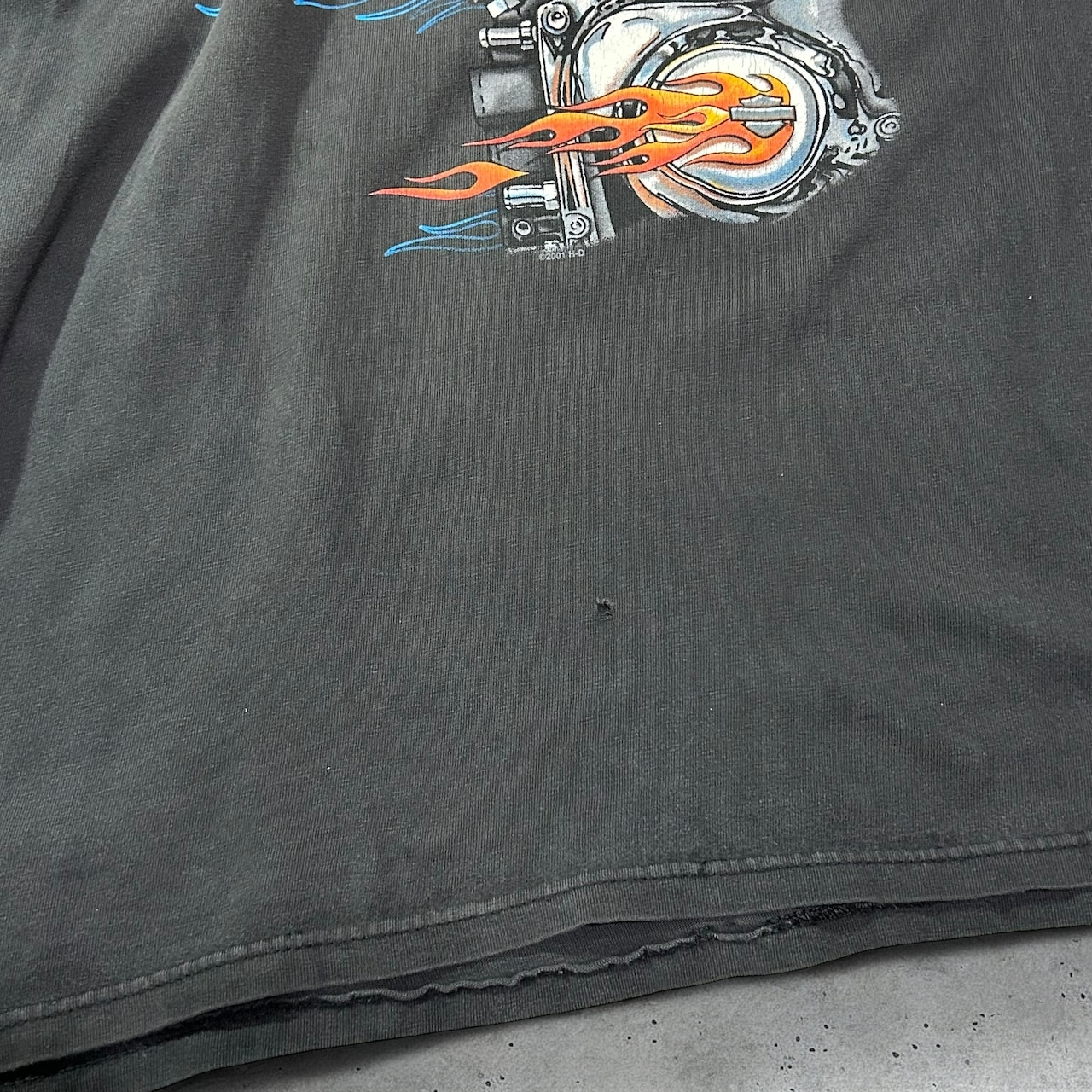 商品説明/2001年製 ハーレーダビッドソン アメリカ製 コピーライト入り Hanes BEEFY-T フレイム ファイヤー スリーブプリント ロンT R.K.STRATMAN INC.