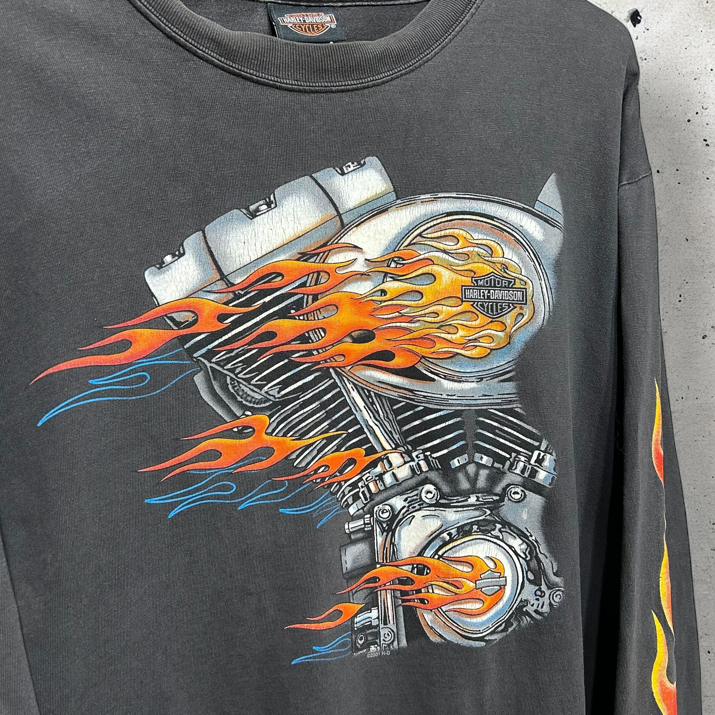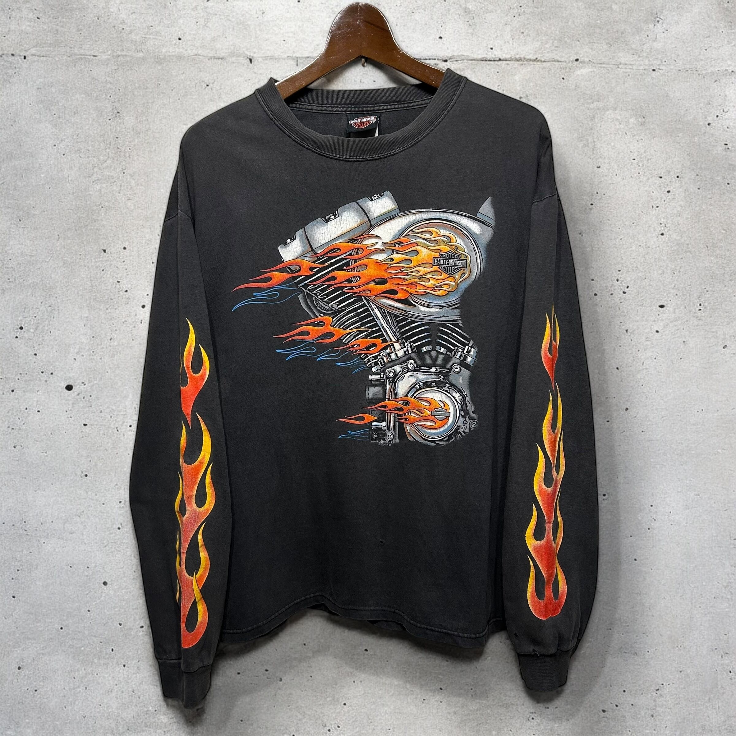 00s HARLEY-DAVIDSON USA製 Flame Pattern L/S Tee L