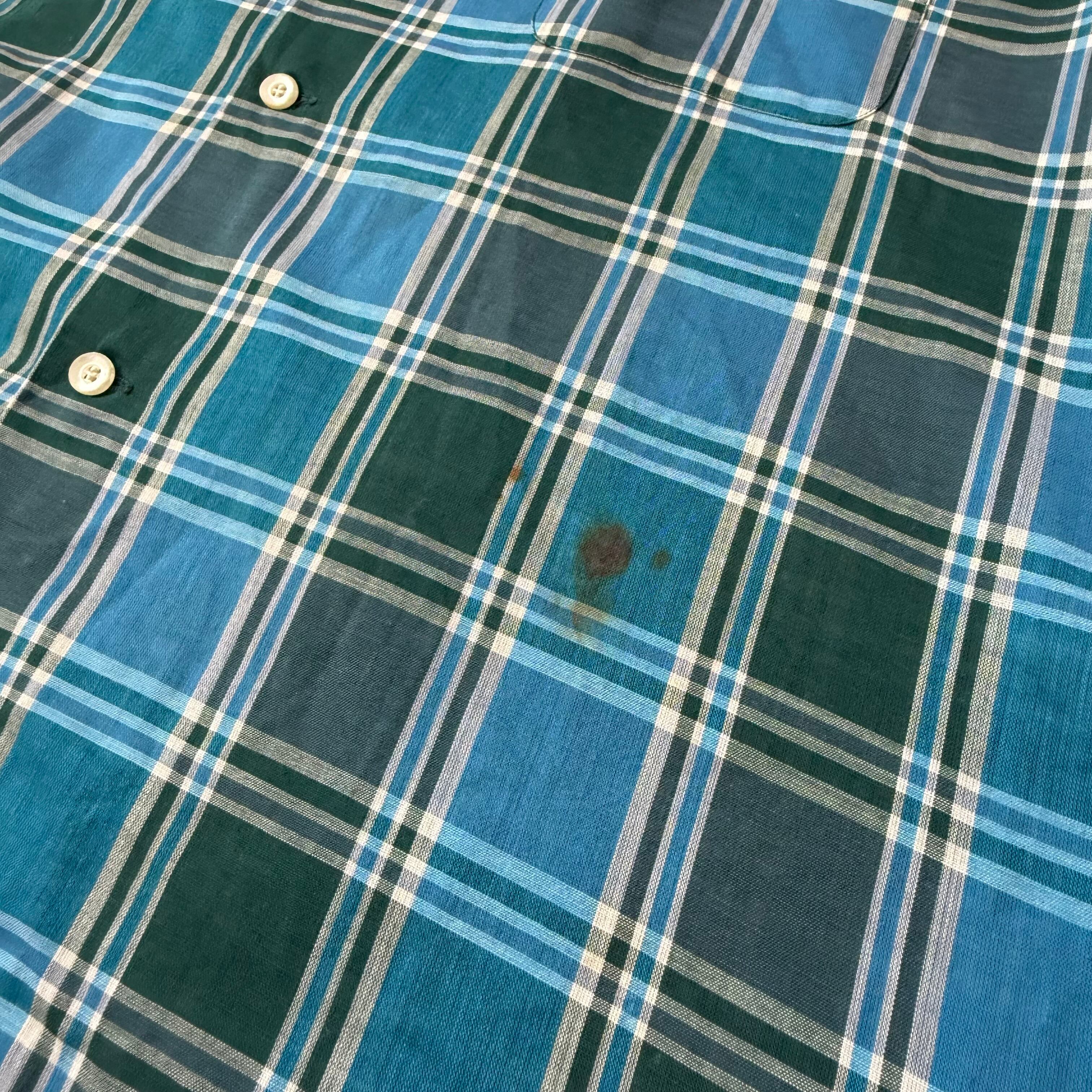 60s TOWNCRAFT S/S Open Collar Check Shirt XL