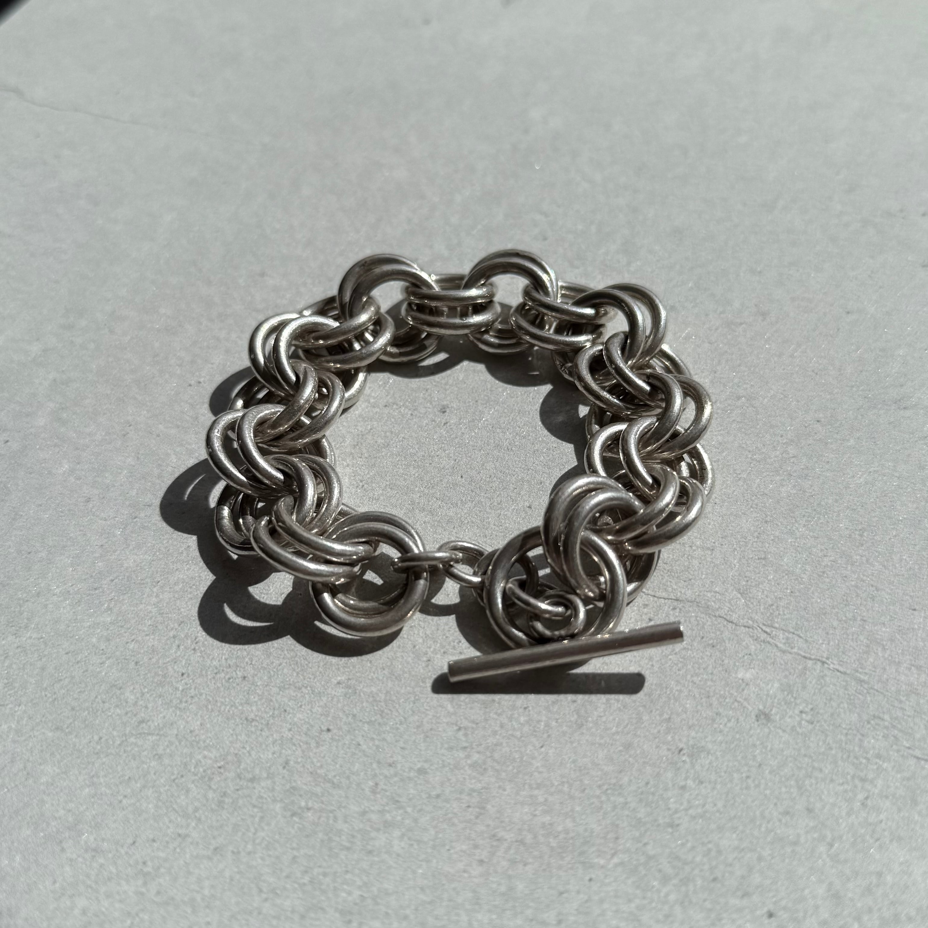 Vintage 925 Silver Double Loop Chain Bracelet – Toggle Clasp