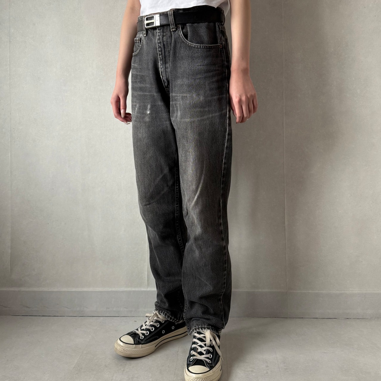 今っぽく履ける細身のブラックデニム、古着で探すと意外と出てこない一本。