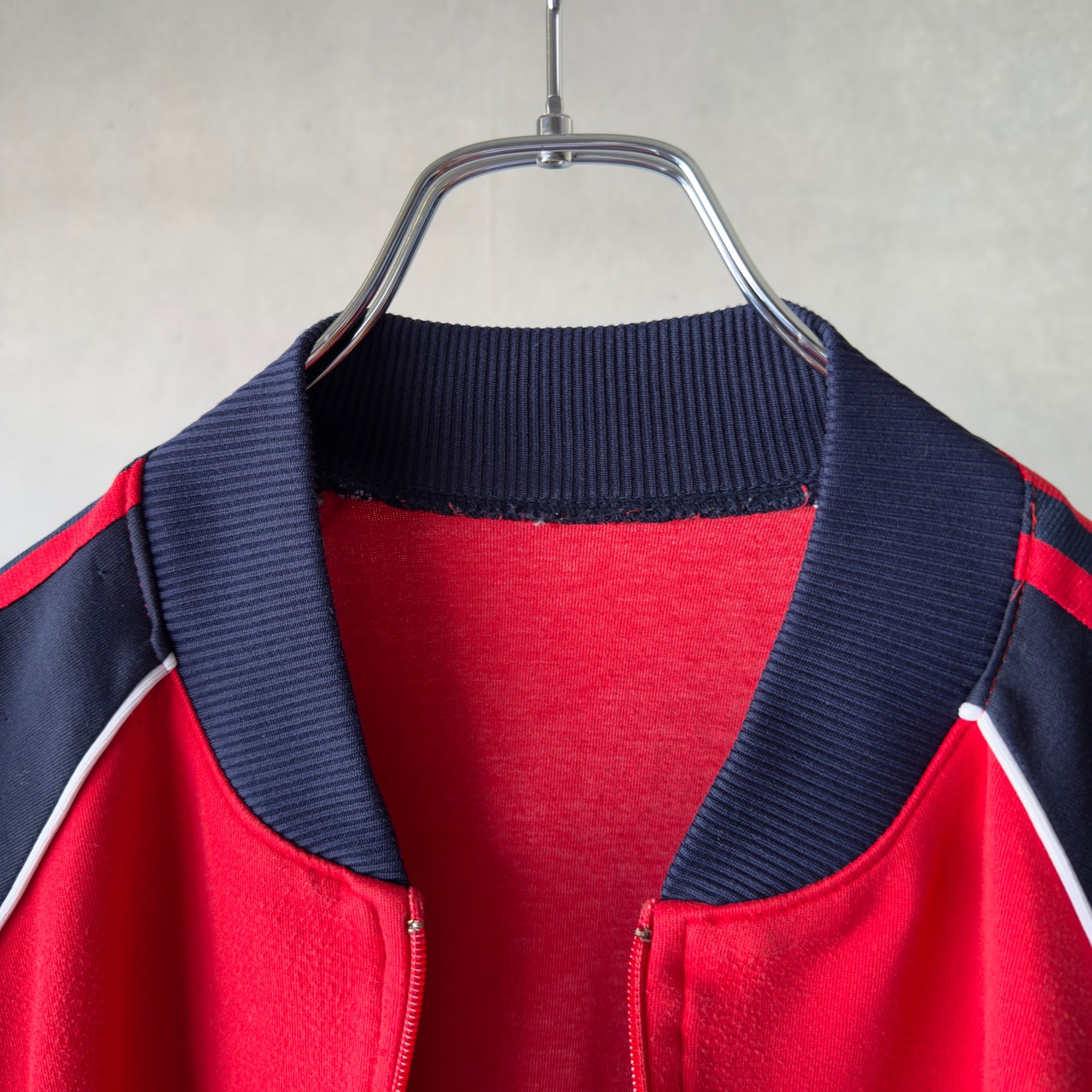 ジップ欠損で閉められないコンディションですが、羽織りとしてざっくり使う分には雰囲気抜群。80sらしい太めのシルエットと厚みのあるリブがしっかり効いていて、ストリートからスポーツミックスまでハマる一枚。