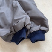 グレー×ネイビーの落ち着いた配色で、リブやステッチまで全体のトーンが絶妙。