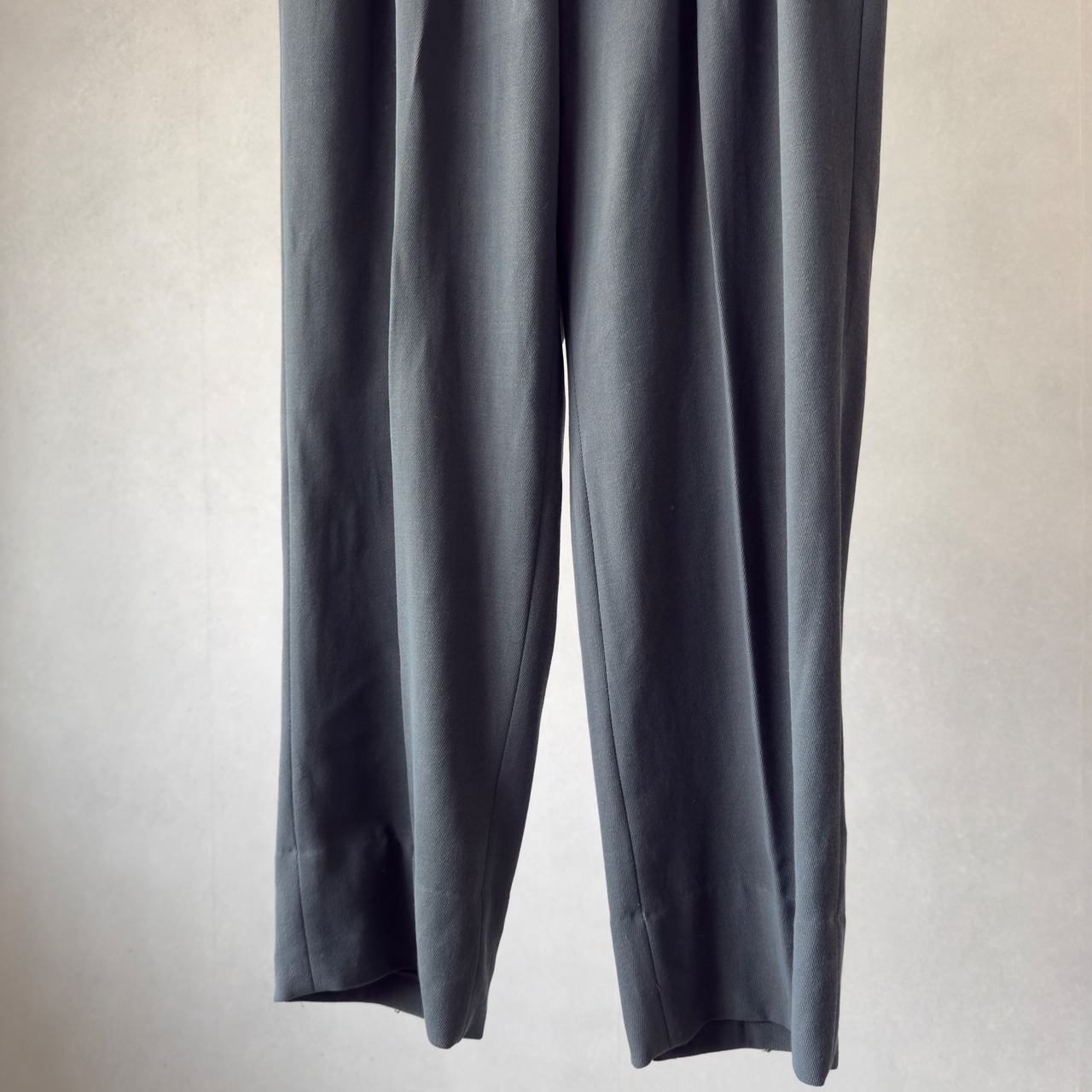 ギャバ特有の品のあるドレープと、光を受けた時の鈍い光沢が抜群にかっこいいです。