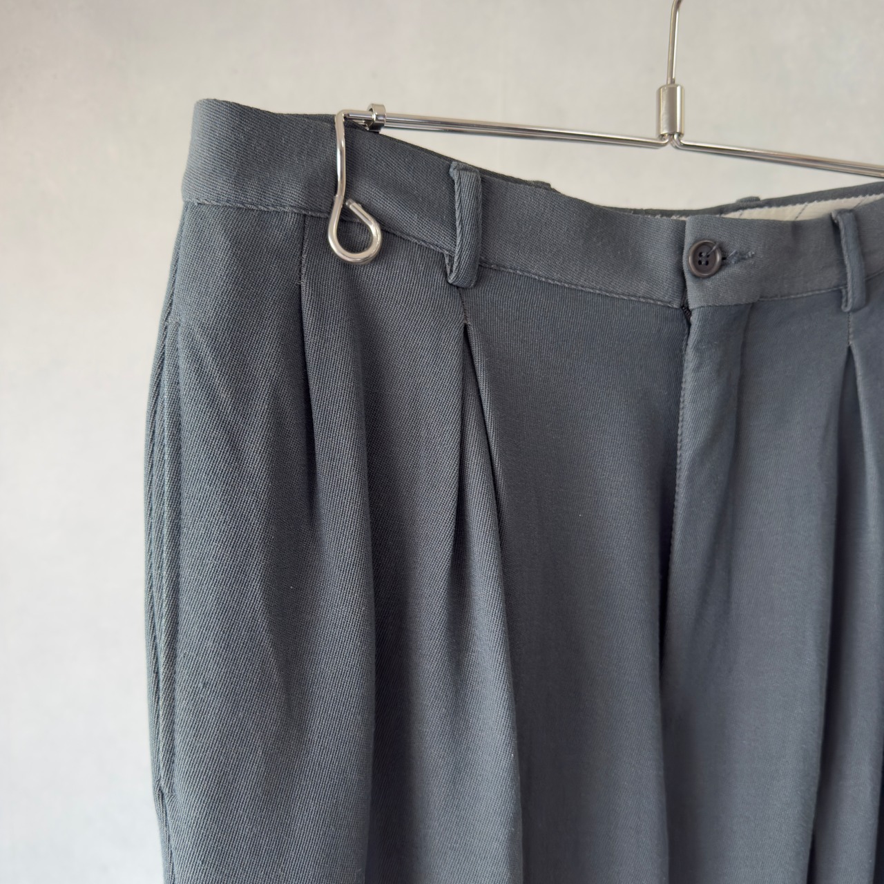 滑らかでとろみのあるウールギャバ生地を使った、2タック入りの一本。