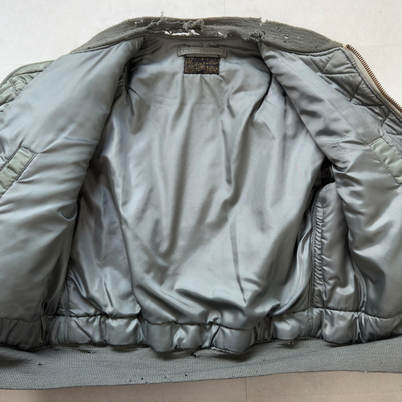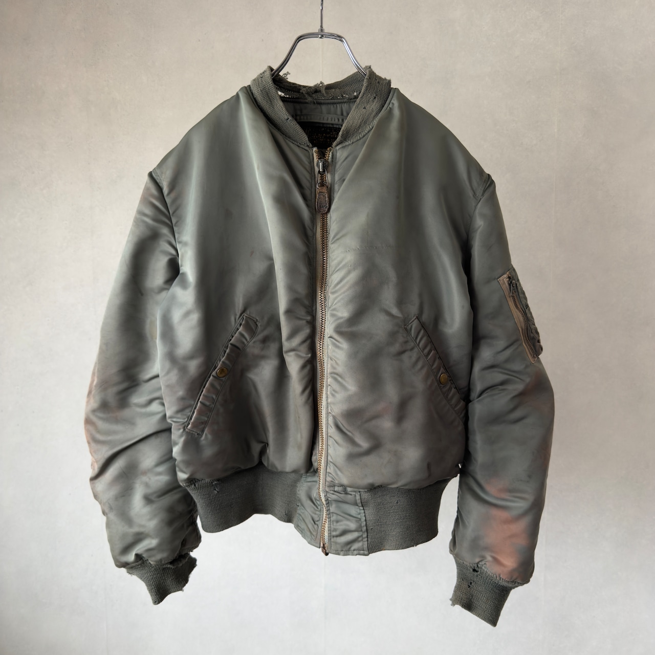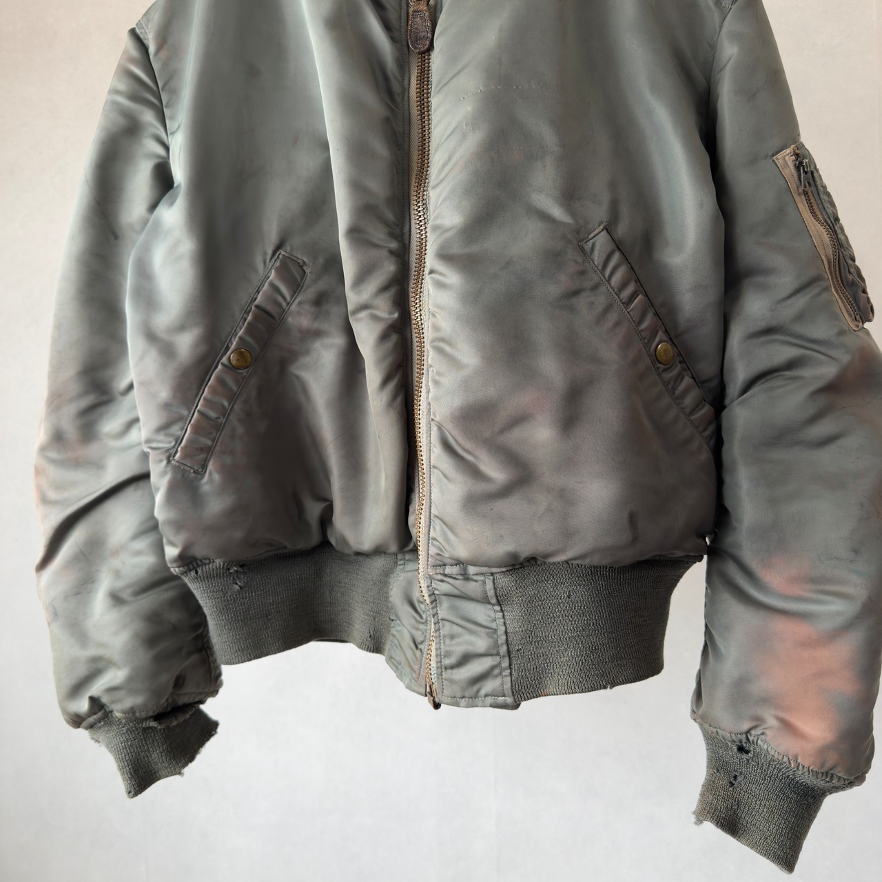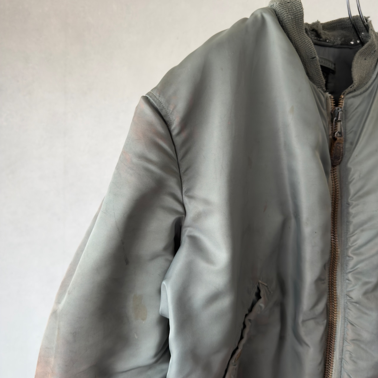 セージグリーンのナイロンシェルはしっとりとフェードし、袖やリブのヤレ具合も完璧。