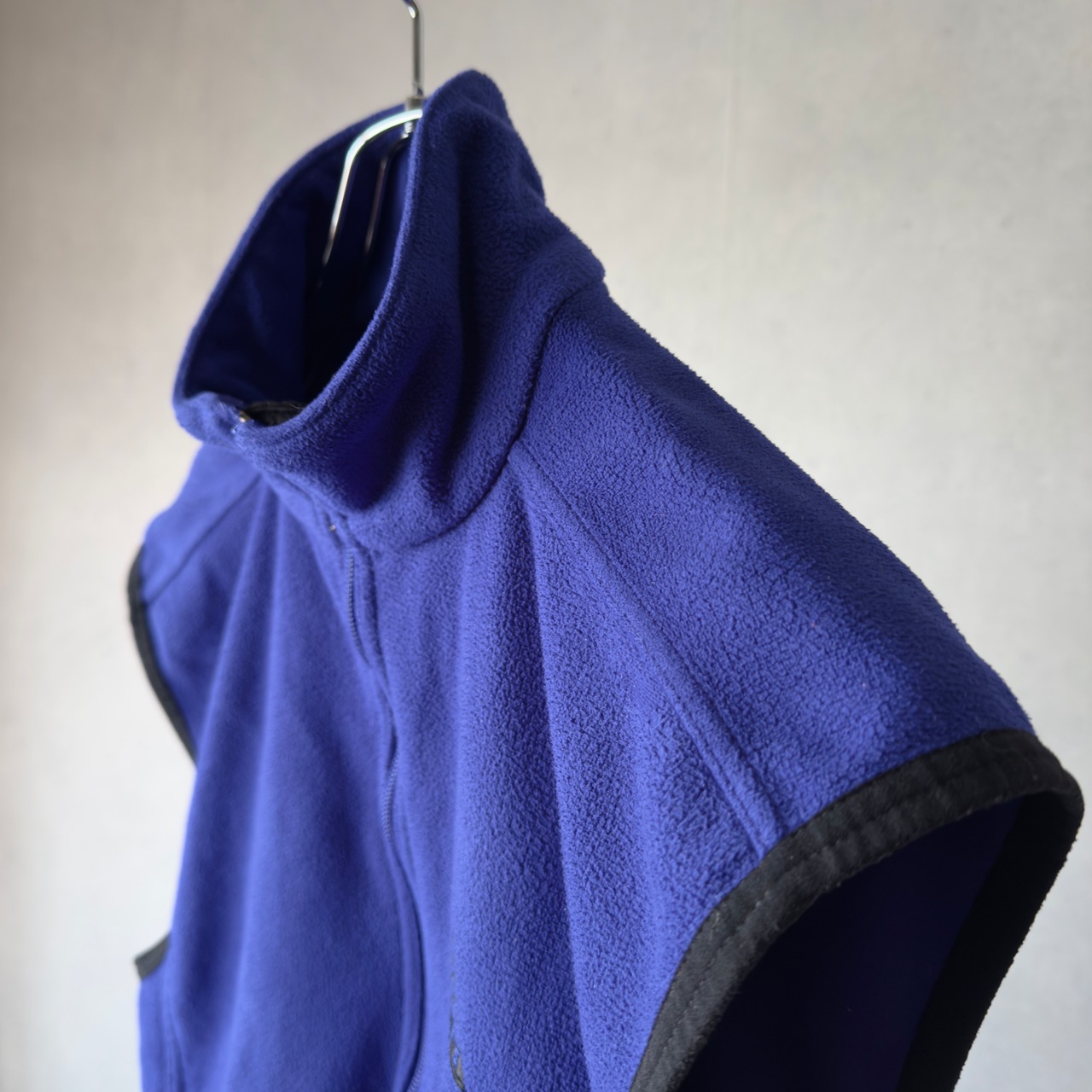 ふんわりとしたフリース素材に、ブラックのパイピングが効いた無駄のないデザイン。