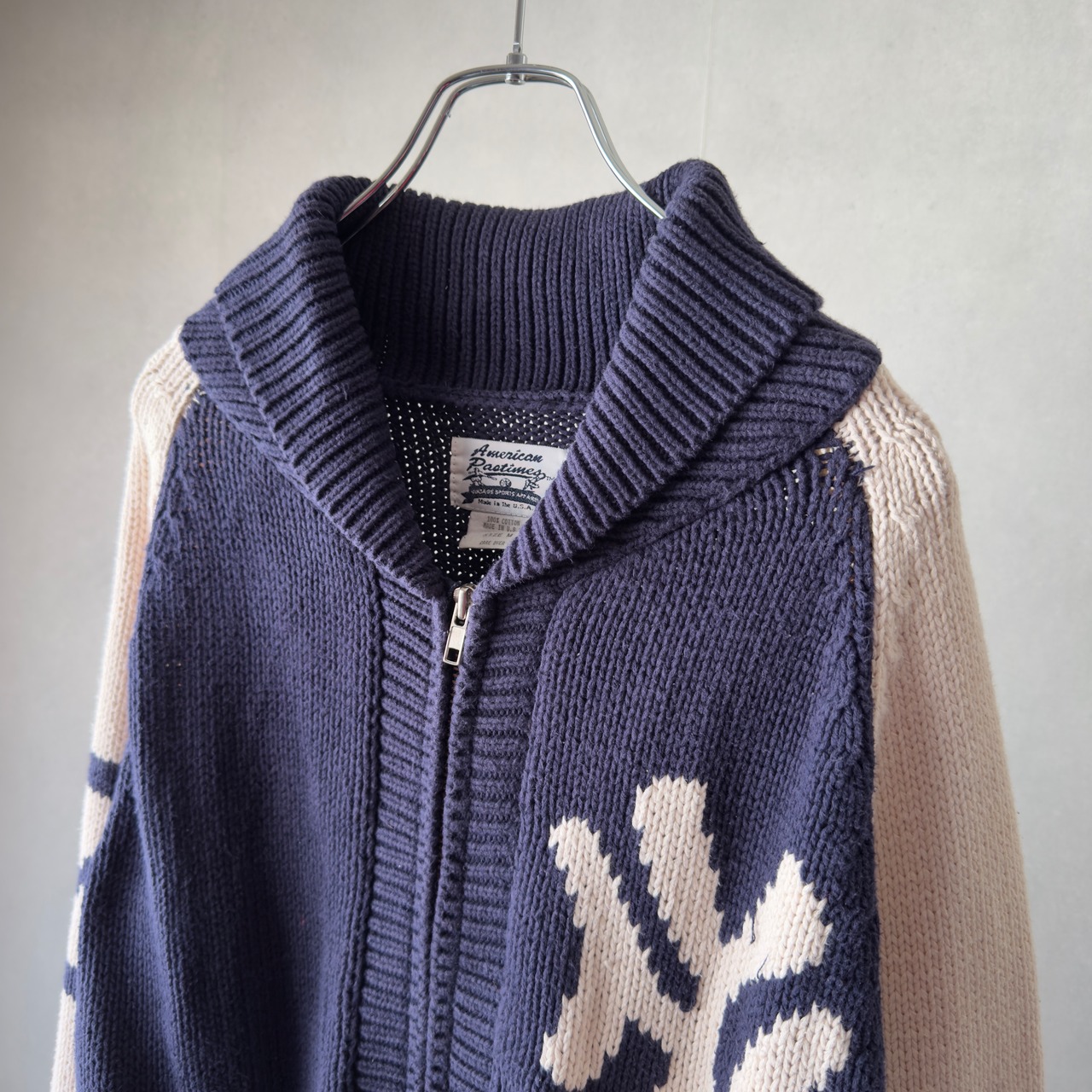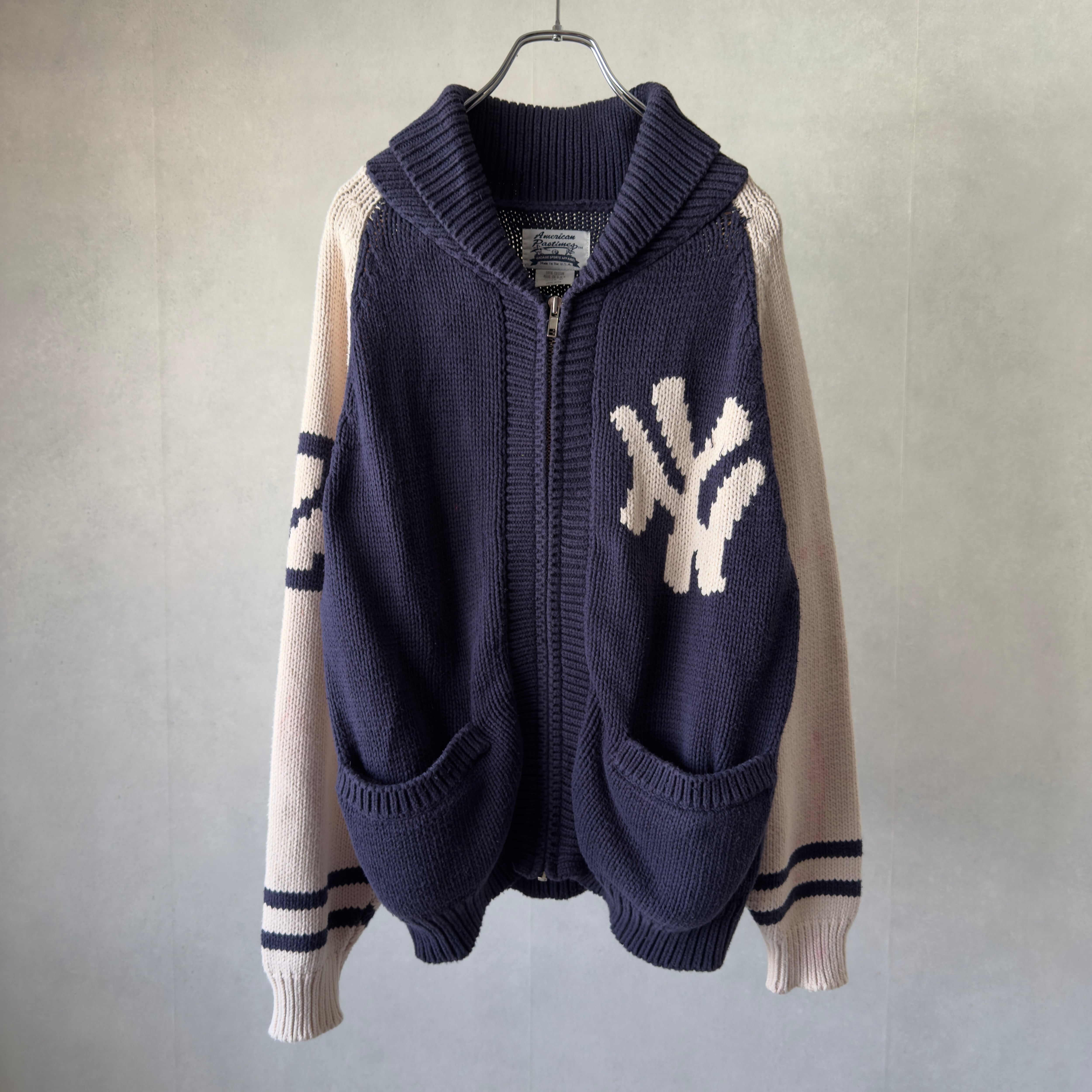 90s American Pastimes USA製 NY Logo Shawl Collar Knit Jacket M