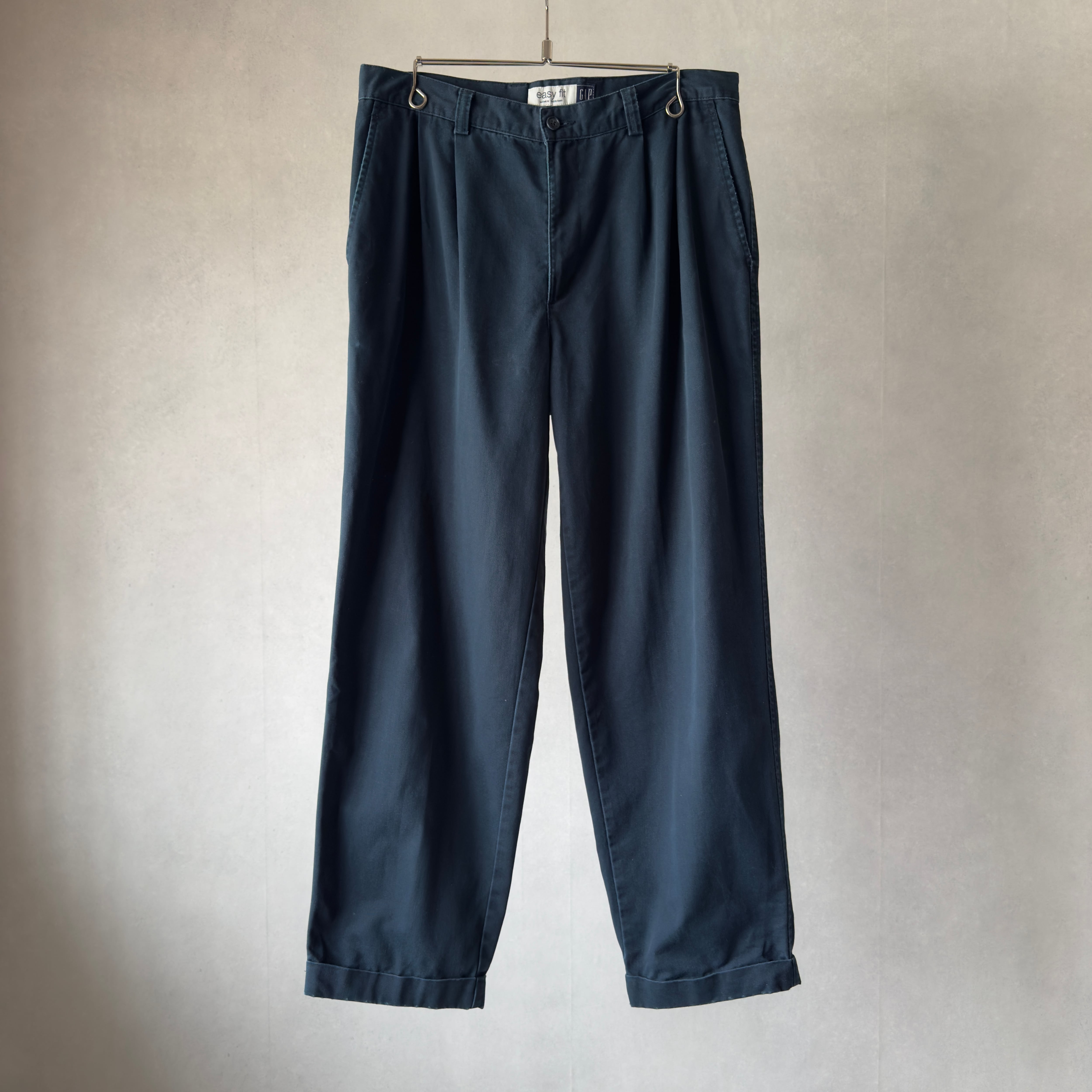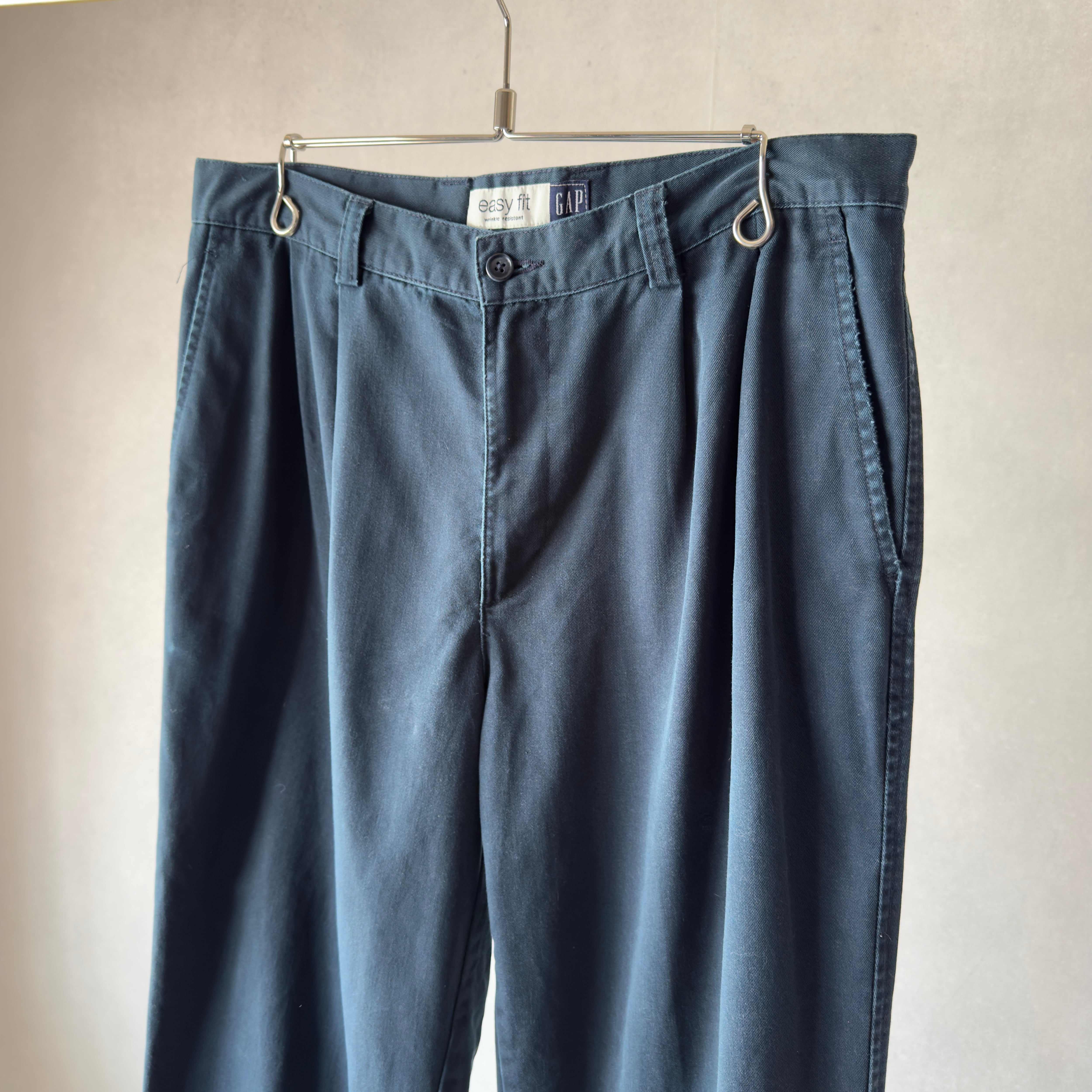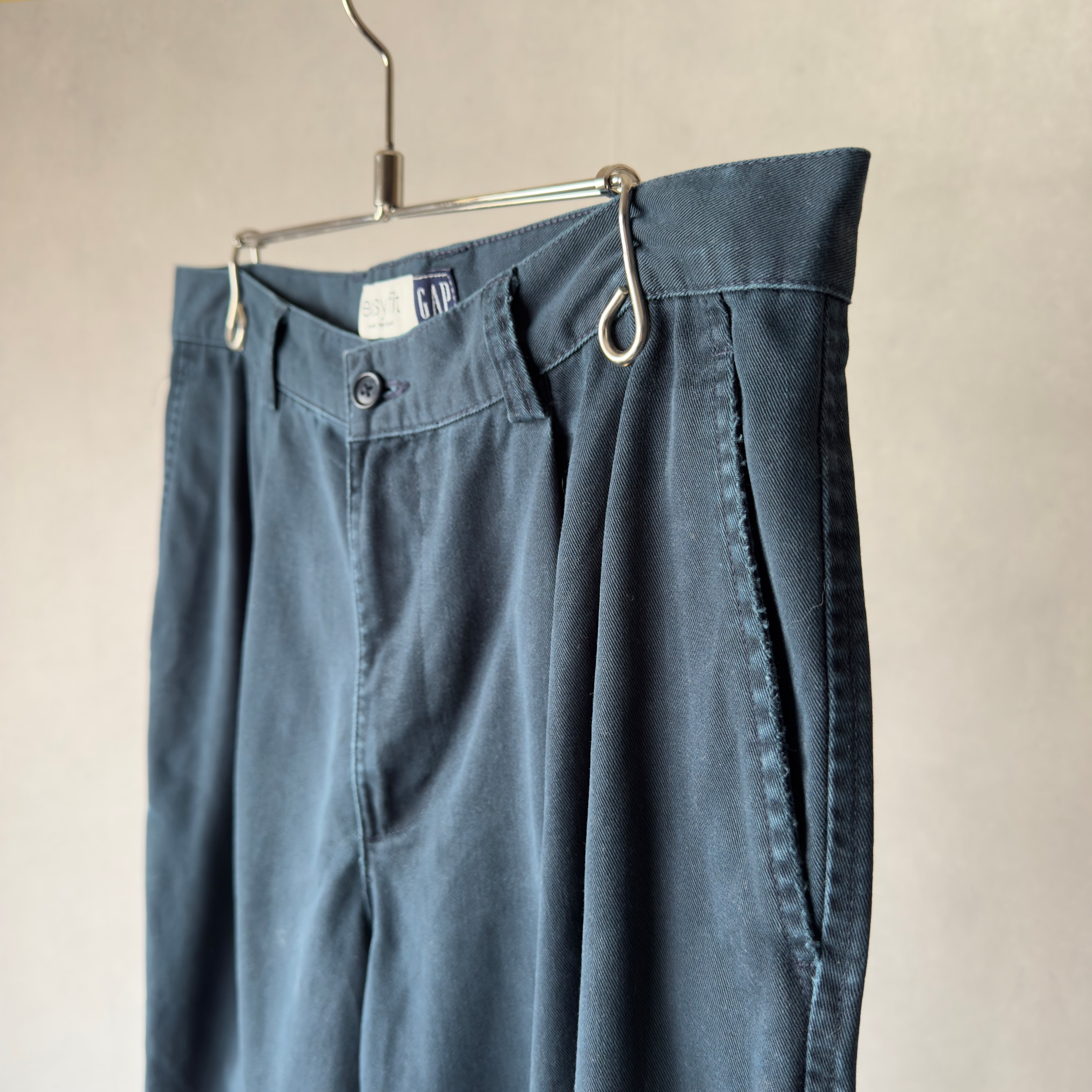90s OLD GAP 2Tuck Cotton Slacks Navy Fade Easy Fit 34×30