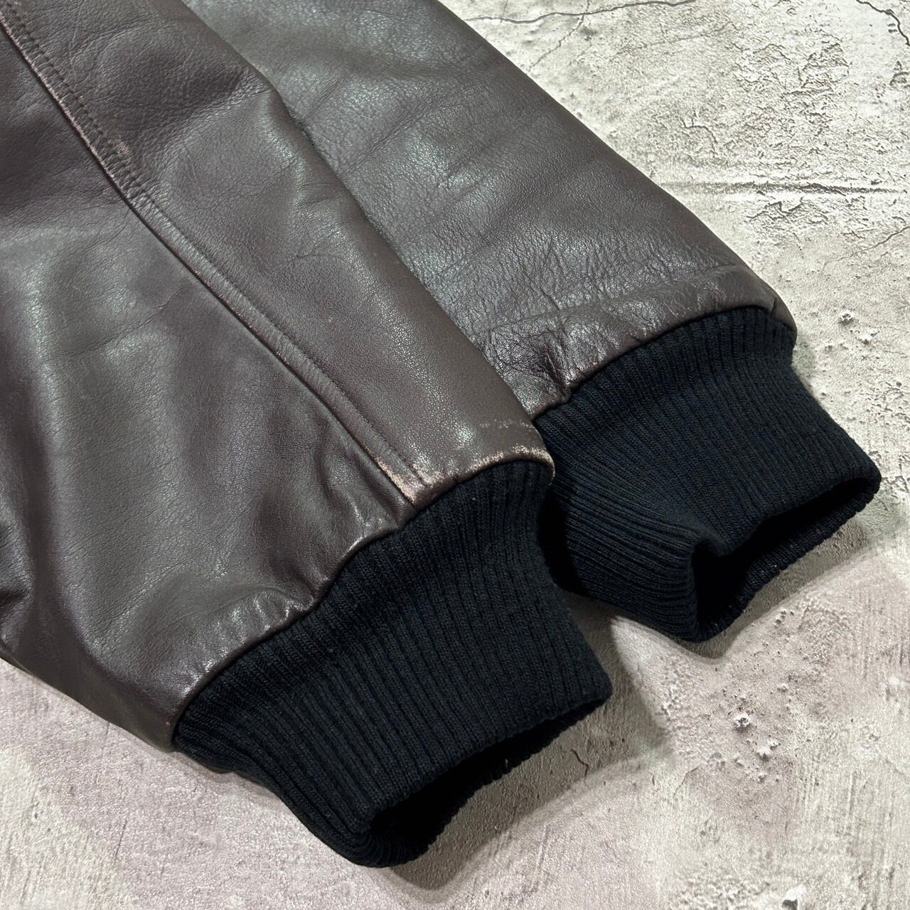 ウールとブラウンレザーの切り替えが渋いスタジャン。